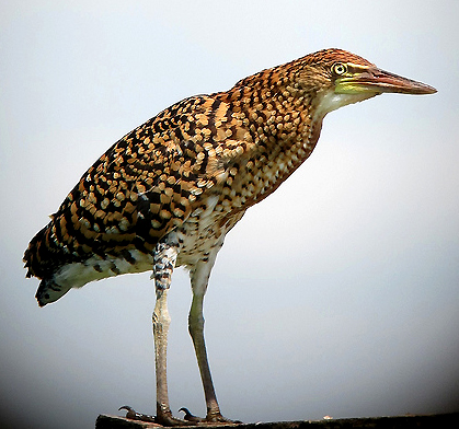 "El mirasol grande es una garza de gran tamaño. Mide entre 63.5 y 76 cm de largo y pesa alrededor de 800 g. Ambos sexos poseen un plumaje similar, pero las hembras suelen ser más pequeñas que los machos y tienen cola de color marrón en vez de negro" (Wikipedia.org).